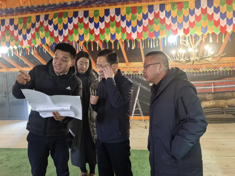 12月23日,祁连县人大常委会主任李成祥陪同县委书记赴峨堡镇9号大帐督导安多卫视藏历新年晚会拍摄现场筹备情况。