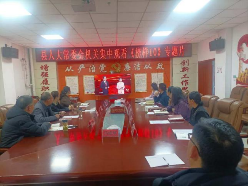 1月22日,门源县人大常委会主任丁国胜组织观看《榜样10》专题片,副主任康秀莲、马文海、孔庆菊参加。